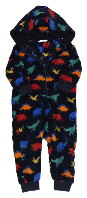 Tmavomodrá chlpatá kombinéza s dinosaurami a kapucňou M&S