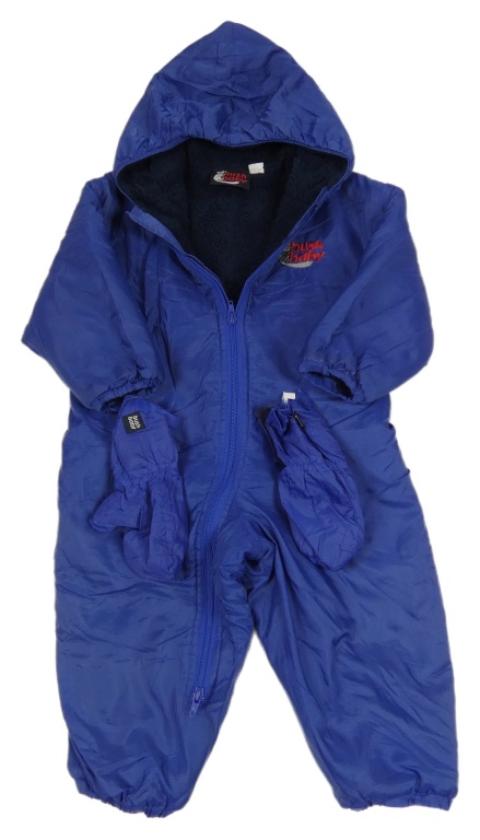 Zafírová šušťáková zateplená kombinéza s lemurem a kapucňou