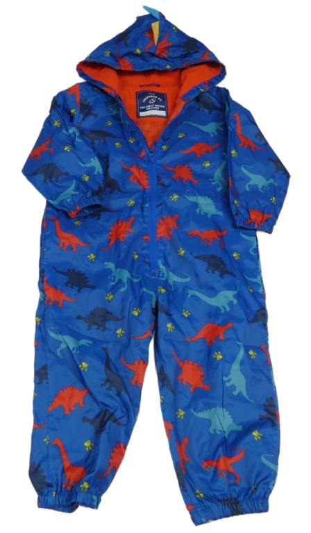 Modrá šušťáková jarná kombinéza s dinosaurami a kapucňou George