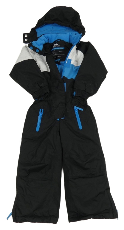 Čierno-bielo-modrá šušťáková zimná kombinéza s kapucňou Trespass