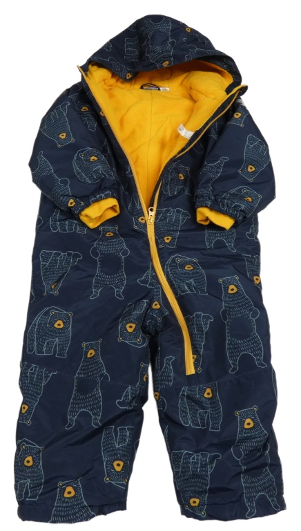 Tmavomodrá šušťáková zimná kombinéza s medvedíkmi a kapucňou Lupilu
