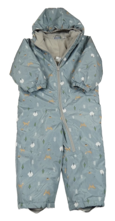 Modrošedá šušťáková zimná kombinéza s liškami a kapucňou Lupilu