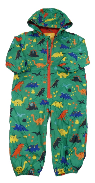 Zelená šušťáková jarná kombinéza s dinosaurami a kapucňou George