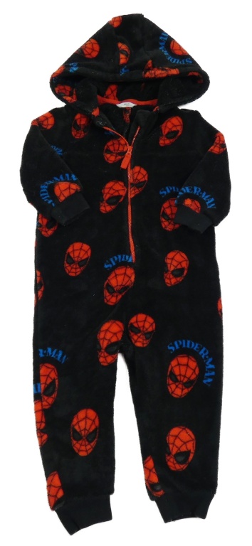 Čierno-červená plyšová kombinéza so Spidermanem a kapucňou M&S
