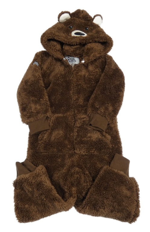 Hnedá chlpatá kombinéza s kapucí - medvěď