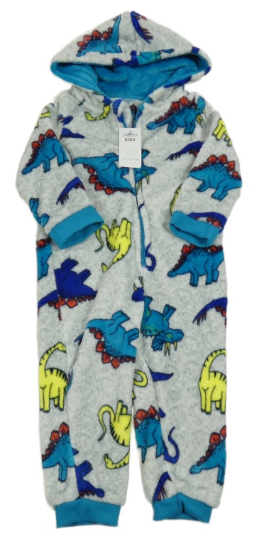 Nové - svetlošedá -modrá melírovaná plyšová kombinéza s dinosaurami a kapucňou little kids