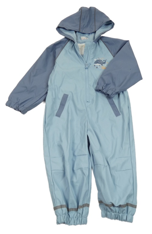 Světlemodro-modrošedá vodeodolná podšitá kombinéza s velrybou a kapucňou