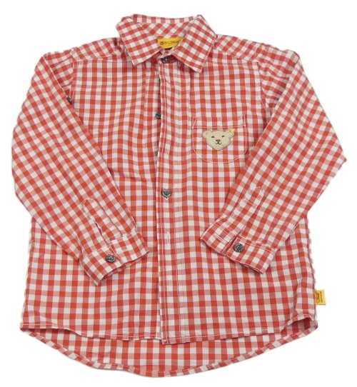 Červeno-biela kockovaná košeľa s medvěďom Steiff
