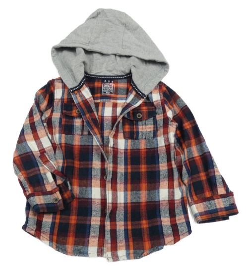 Tmavomodro-červeno-biela kockovaná košeľa s teplákovou kapucňou F&F