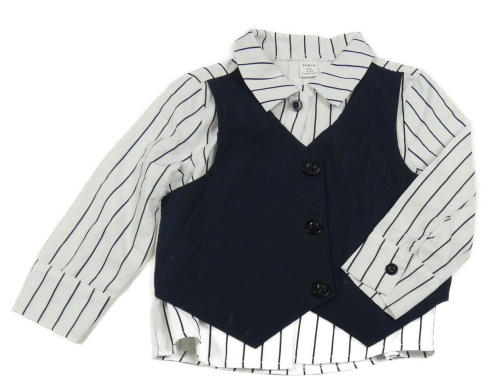 Bielo-tmavomodrá pruhovaná košeľa s našitou vestou shein