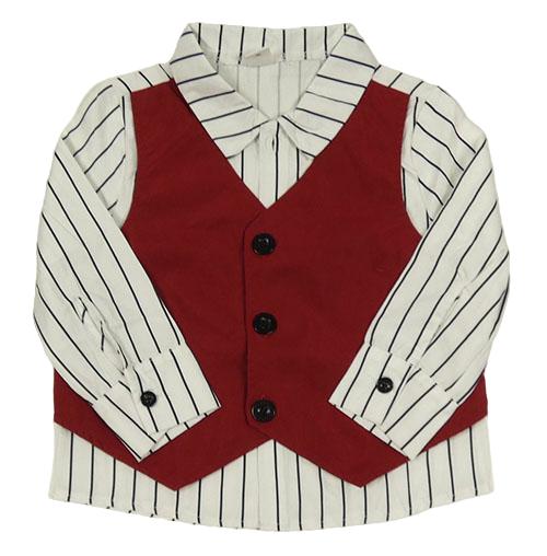 Bielo-čierna pruhovaná košeľa s vínovou vestou Shein