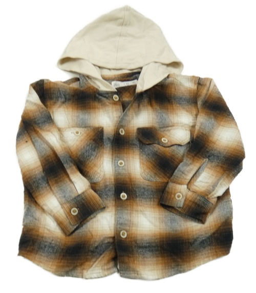 Hnedo-čierno-smotanová kockovaná flanelová košeľa s kapucňou Zara