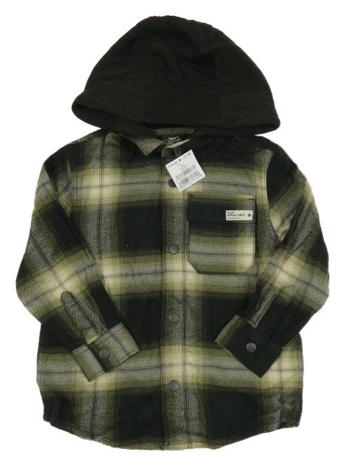 Nové - tmavozelená kockovaná flanelová košeľa s teplákovou kapucňou Next