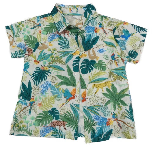 Bielo-zeleno-modrá košeľa s listami a zvieratkami