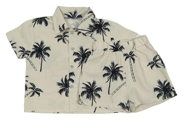 2set - Béžová košeľa s palmami + kraťasy Shein