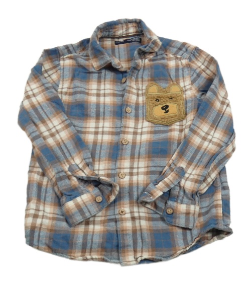 Modro-hnedo-biela kockovaná košeľa s medvěďom Next