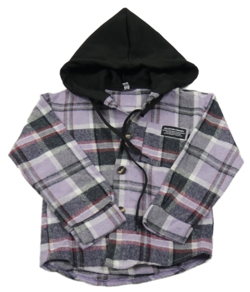 Fialovo-čierno-červená kockovaná flanelová košeľa s kapucňou