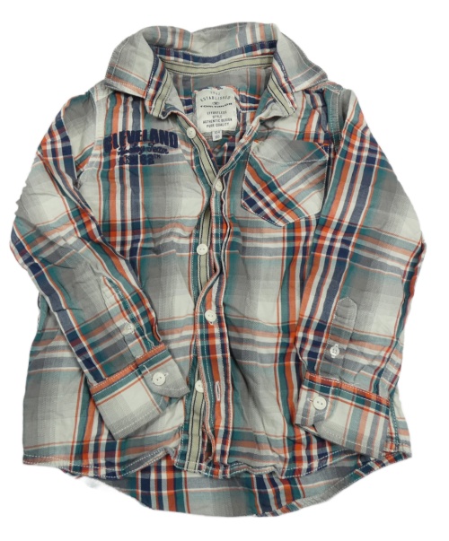 Šedo-zeleno-korálová kostkovaná košle s nápisom Tom Tailor