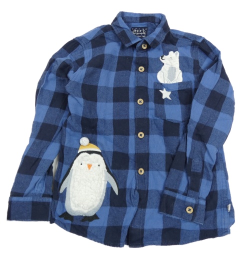 Modrá kockovaná košeľa s medvěďom a tučňákem Next