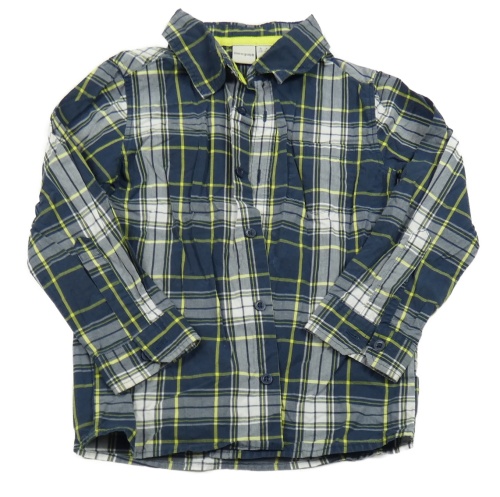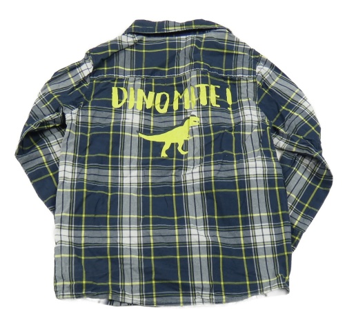 Tmavomodro-limetková kockovaná košeľa s dinosaurom Manguun