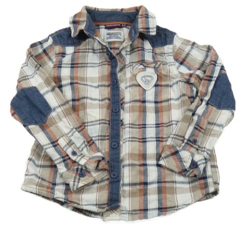 Bielo-hnedo-tmavomodrá kockovaná košeľa s nášivkou Sergent Major