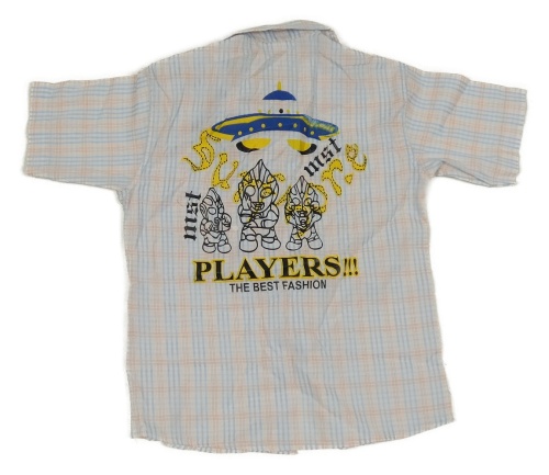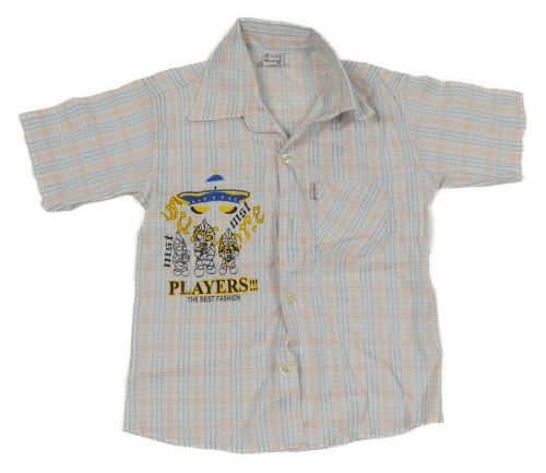 Bielo-modro-červená kockovaná košeľa s potlačou