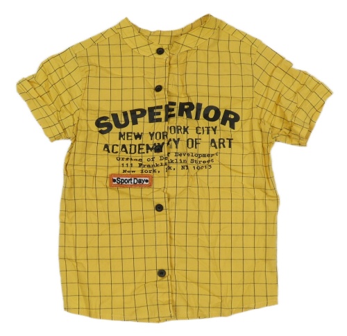 Žlto-čierna kockovaná košeľa s nápisom