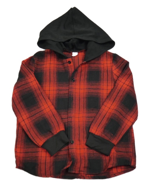 Čierno-červená kockovaná košeľa s kapucňou Shein