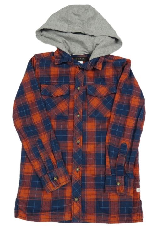 Tmavomodro-tehlová kockovaná košeľa s sivou teplákovou kapucňou River Island