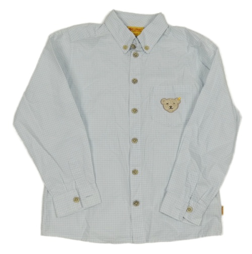Světlemodro-biela kockovaná košeľa s medvěďom