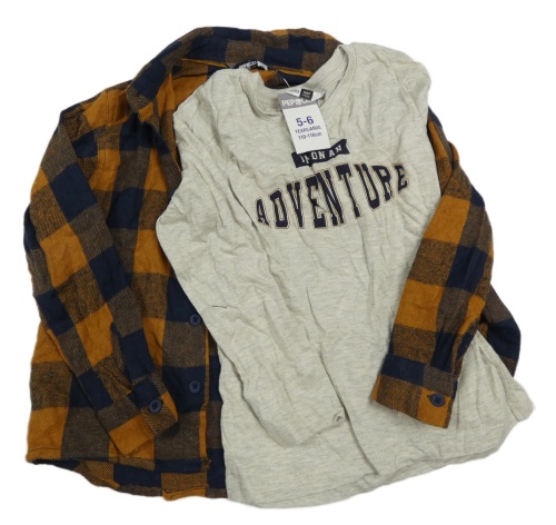 Nové - 2set - Hnedo-tmavomodrá kockovaná košile + sivé tričko s nápisom Pep&Co