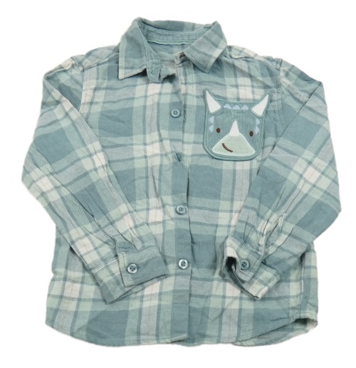 Modro-zeleno-biela kockovaná flanelová košeľa s dinosaurom George