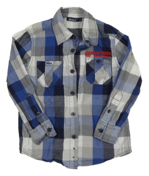 Tmavomodro-sivo-biela kockovaná košeľa s nápisom