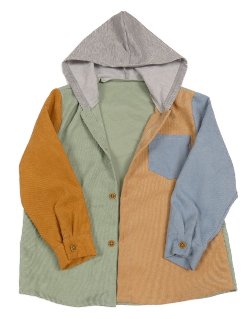 Hnedo-zeleno-modrá rebrovaná košeľa s kapucňou Shein