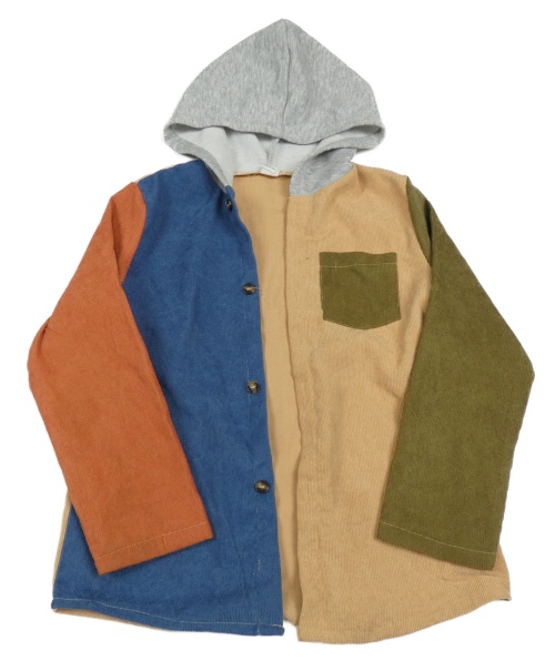 Béžovo-kaki-modrá rebrovaná zamatová košeľa s kapucňou shein