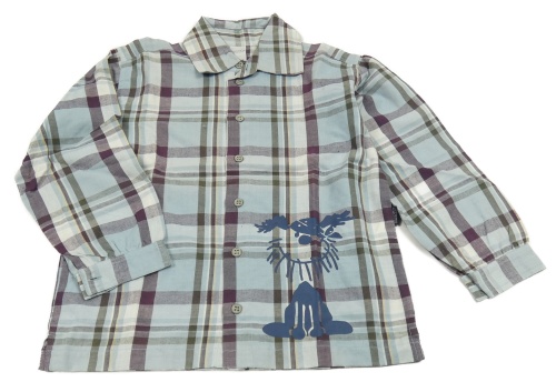 Světlemodro-lilkovo-bílo-khaki kockovaná košeľa s pirátem KANZ
