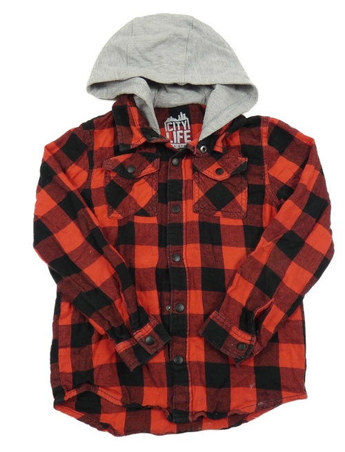 Červeno-čierno-sivá kockovaná košeľa s kapucňou F&F