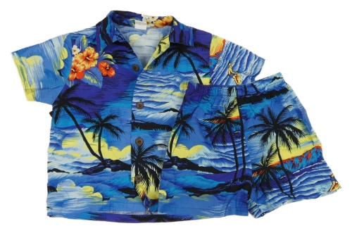 2set - Modrá košeľa s palmami + kraťasy