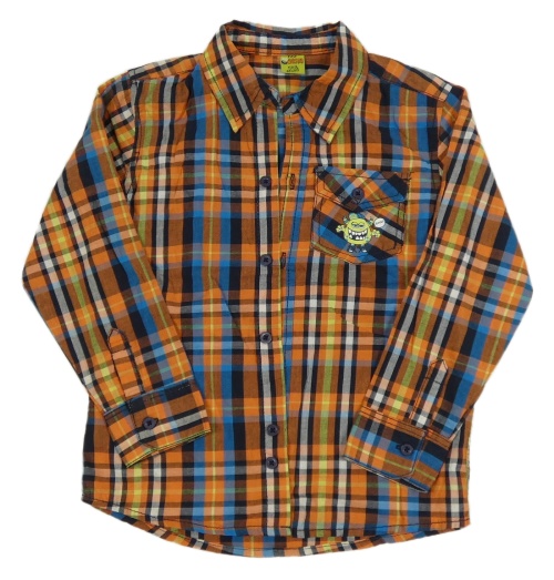 Oranžovo-tmavomodro-modrá kockovaná košeľa s príšerkou Kiki&Koko