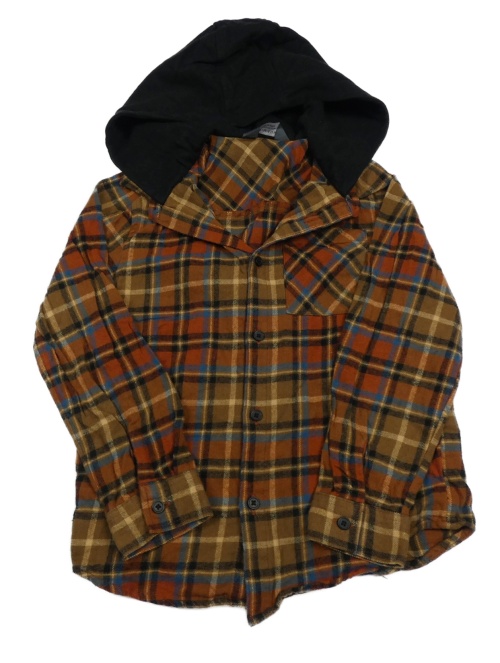 Hnedo-čierno-petrolejová kockovaná flanelová košeľa s teplákovou kapucňou Primark