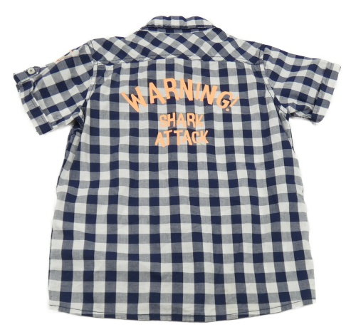 Tmavomodro-biela kockovaná košeľa so žralokom a nápismi Kiki&Koko