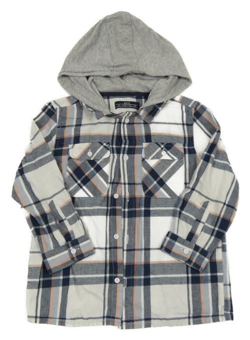 Bielo-modro-ružová kockovaná košeľa s kapucňou