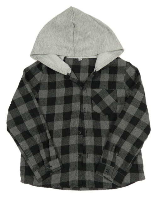 Čierno-sivá kockovaná flanelová blúzka s kapucňou