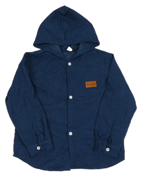 Tmavomodrá rebrovaná košeľa s nášivkou a kapucňou Shein