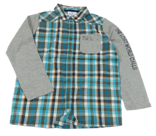 Kostkovano-sivá vzorovaná melírovaná košeľa s nápismi Topolino