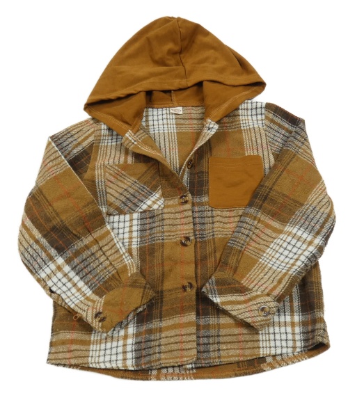 Hnedo-bielo-okrová kockovaná košeľa s kapucňou