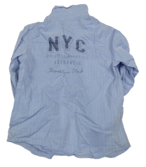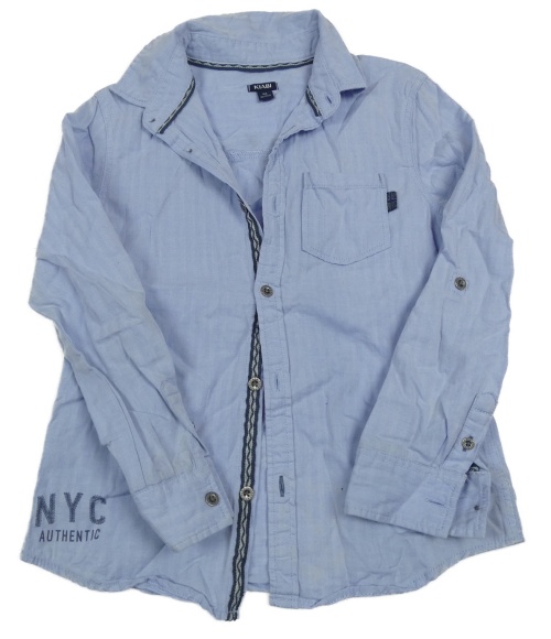 Svetlomodrá pruhovaná melírovaná košeľa s písmenky a nápismi KIABI
