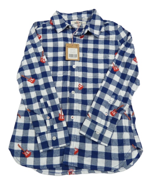 Nové - Modro-biela kockovaná flanelová košeľa s kytarami Mini Boden