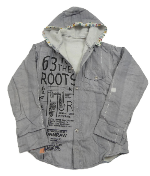 Sivá pruhovaná podšitá košeľa s nápisom a kapucňou