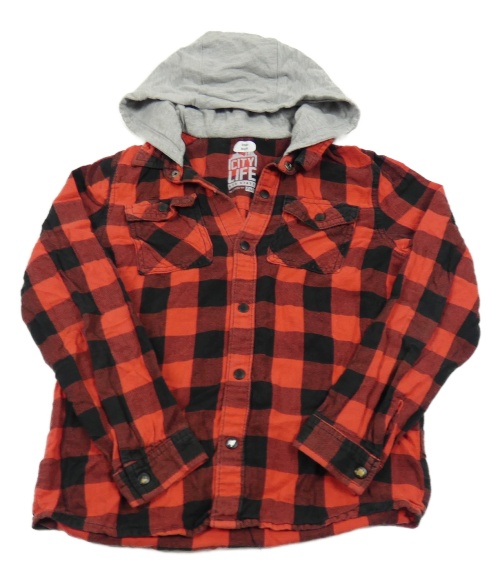 Červeno-čierna kockovaná košeľa s kapucňou F&F